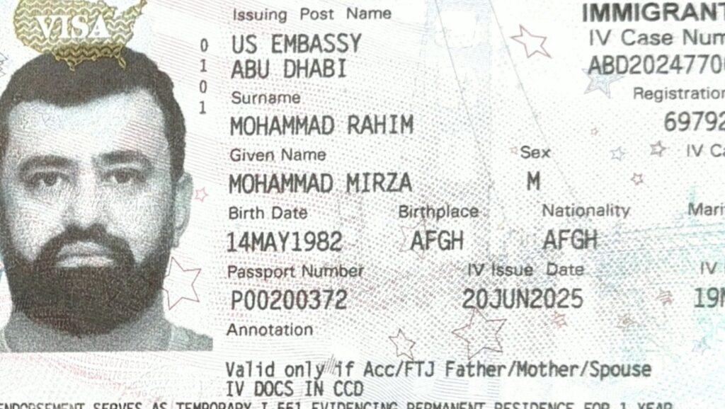 According to the visa issued by the U.S. Embassy in Abu Dhabi, Katawazai’s immigrant visa is of the SQ2 category, a type of visa generally granted to individuals or family members of applicants under the U.S. Special Immigrant Visa program — a program primarily intended for Afghans who worked with U.S. agencies or allied institutions.