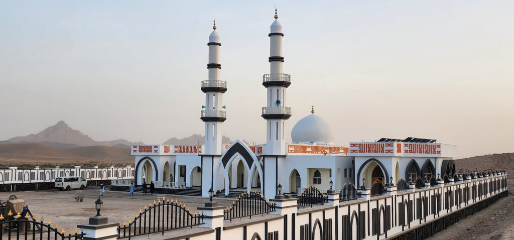 خبرگزاری باختر، زیر ادارهی طالبان، روز یکشنبه، ۳ اگست، به نقل از محمداشرف حقشناس، سخنگوی وزارت فواید عامه گزارش داده است که این مسجد در مساحت سه جریب زمین در ولسوالی دامان ولایت قندهار ساخته شده و ظرفیت همزمان ۳۰۰ نمازگزار را دارد.